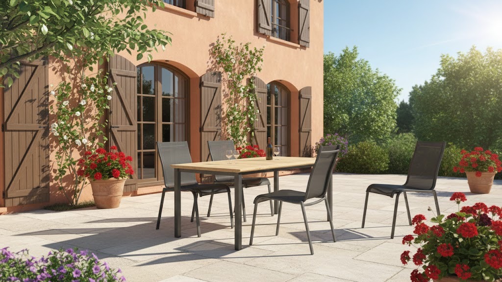 Chaise empilable Lugano en aluminium col. gris alu avec toile haut de gamme Karatex *