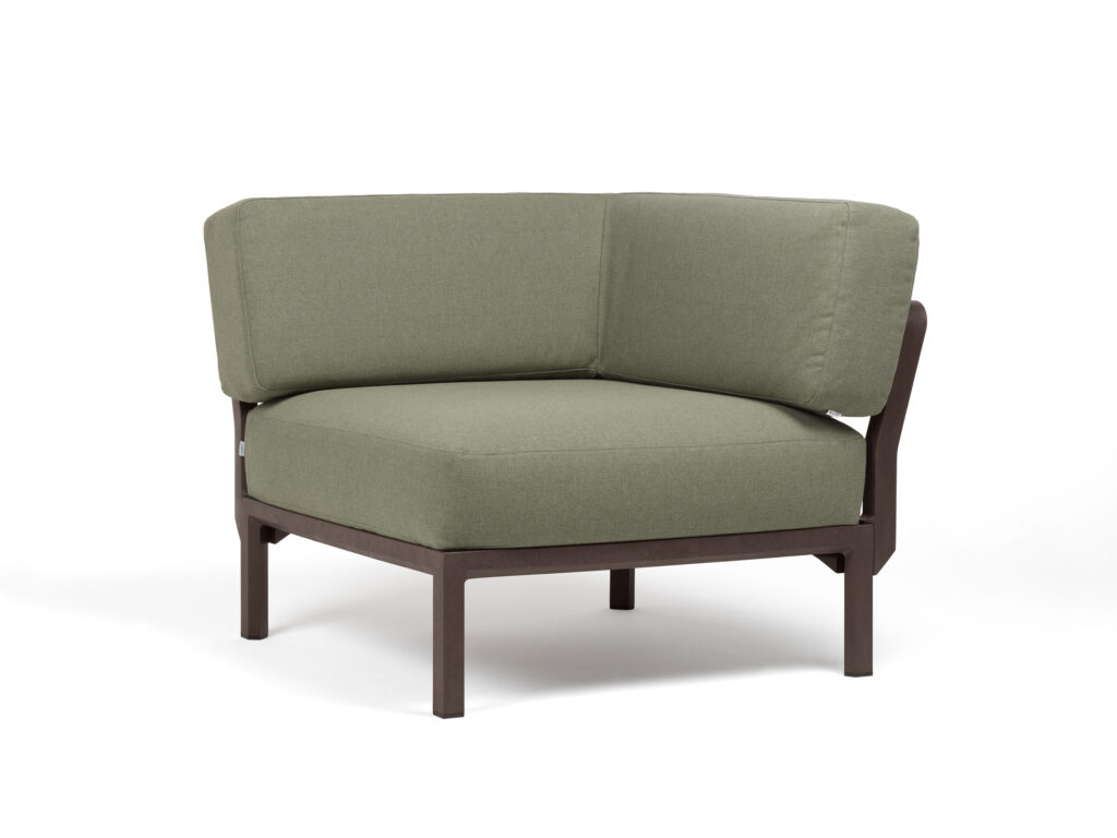 Le module d’angle Maximo est composé d’une structure en polypropylène régénérée renforcé avec de la fibre de verre, traité anti UV et teinté dans la masse, 100% recyclable, effet mat.