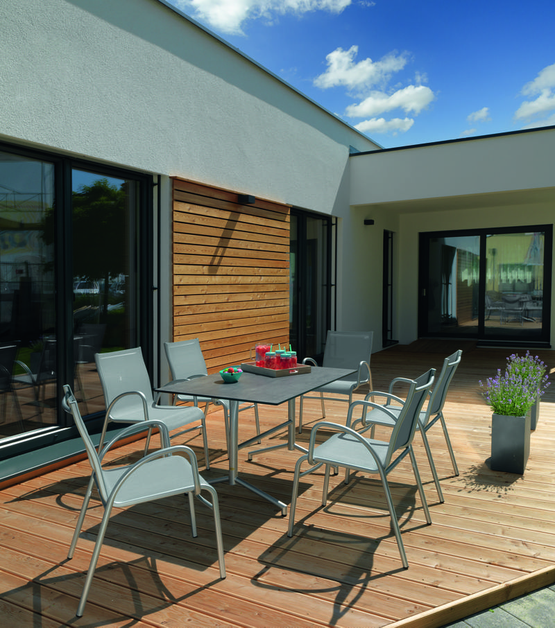 Stapelbarer Sessel PADUA aus Aluminium mit hochwertiger Karatex-Bespannung.