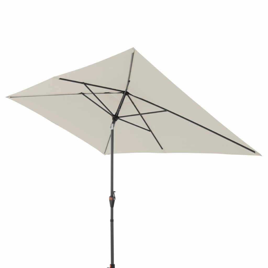 Ce parasol à mât central exclusif vous offre de l’ombre exactement quand vous en avez besoin – grâce à la fonction innovante Auto-Tilt. Il suffit de continuer à tourner la manivelle et le parasol s’incline automatiquement en fonction de la position du soleil, afin que vous soyez parfaitement protégé à tout moment de la journée.