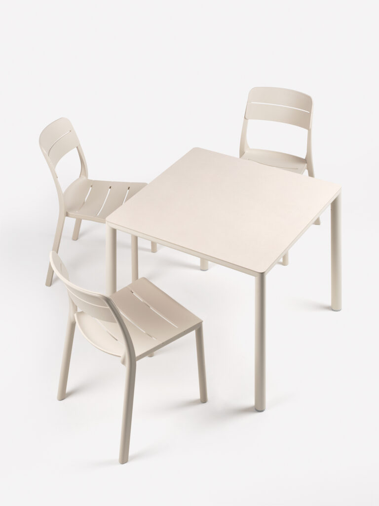 Disponible en coloris anthracite, tortora, corda ou tabacco et dans les dimensions 70x70cm, 80x80cm, 90x90cm, 120x70cm, 140×80 et 160x90cm et en version mange-debout 70x70cm